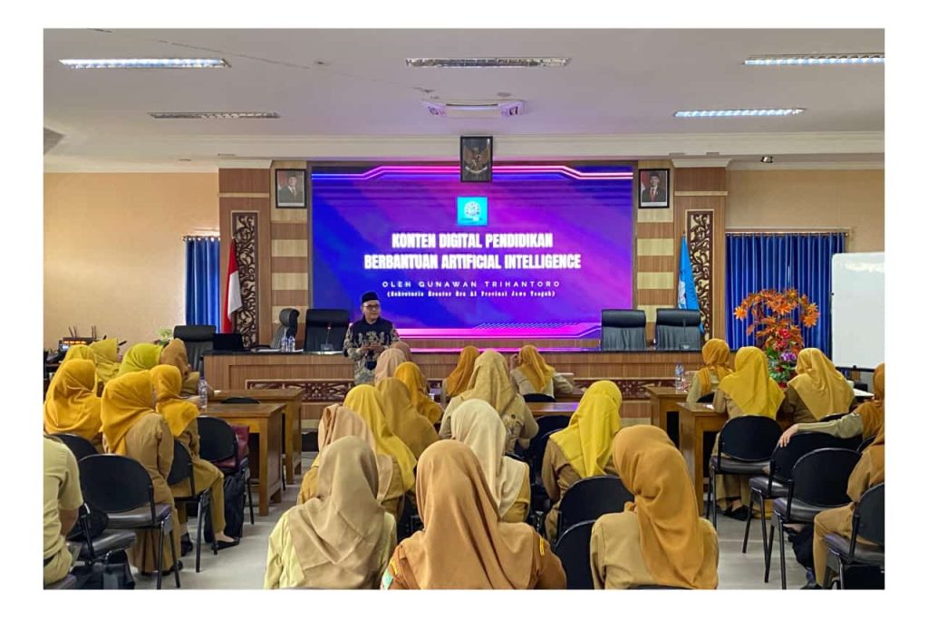 Salah satu narasumber, Sekretaris Kreator Era AI Provinsi Jawa Tengah, Gunawan Trihantoro, membawakan materi tentang “Konten Digital Pendidikan Berbantuan AI dan Etika Bermedia Sosial bagi Pendidik.”